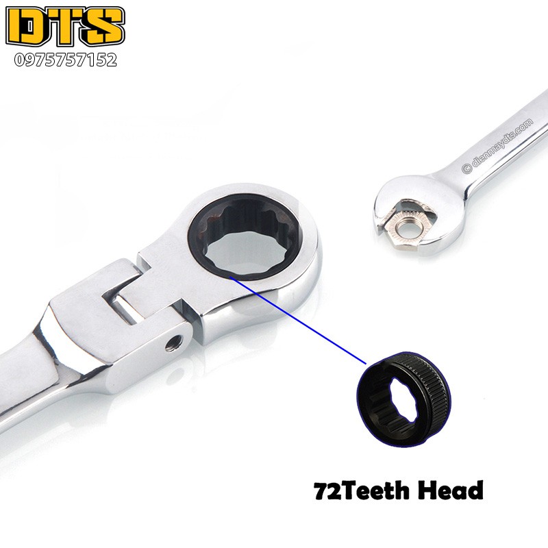 Cờ lê có đầu tròng, đầu vòng miệng. Bên trong đầu tròng có 72 bánh răng vô cùng linh hoạt, giúp công việc trở lên vô cùng dễ dàng, nhanh chóng