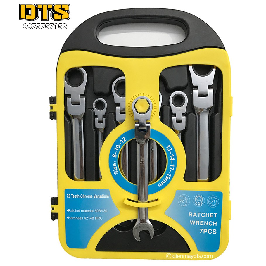 Bộ cờ lê vòng miệng - tròng gật gù tự động 2 chiều 7 chi tiết cao cấp 8-19mm