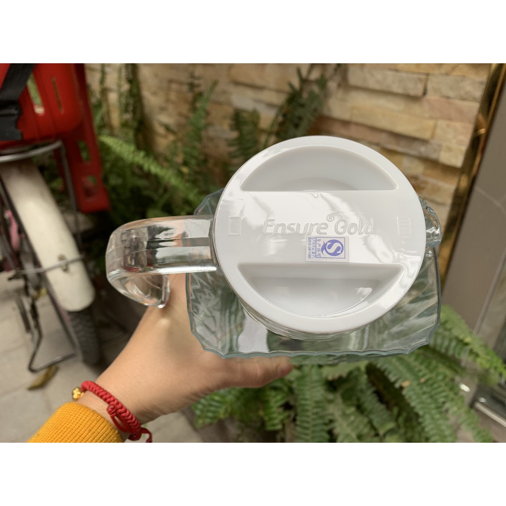 Hàng quà tặng Ensure cũng là hàng hãng Luminar, chỉ có nắp in chữ Ensure thôi ạ, chất lượng như nhau ạBình nước thủy tinh luminarc quadro 1L7