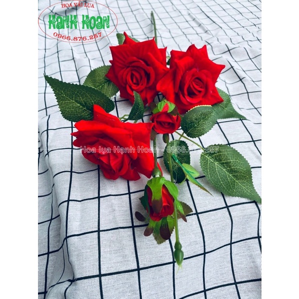Giới thiệu Cành Hoa hồng nhung cao cấp 1m - Hoa giả, hoa vải lụa