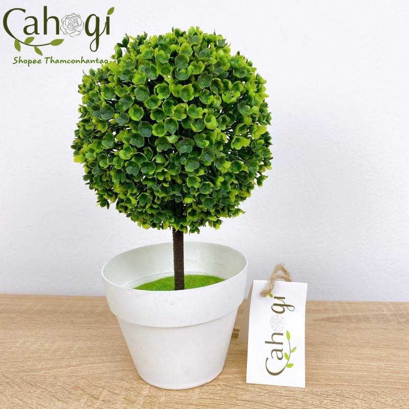 Kích Thước: chiều cao từ đáy chậu đến đỉnh cây cắm sẵn 23-26cm. Đường kính mỗi cây 13~15cmChất liệu: cây bằng nhựa, chậu nhựa, xốp nhồi phủ cỏ, xi măng dưới đáy chậu tạo sức nặng cho cây.