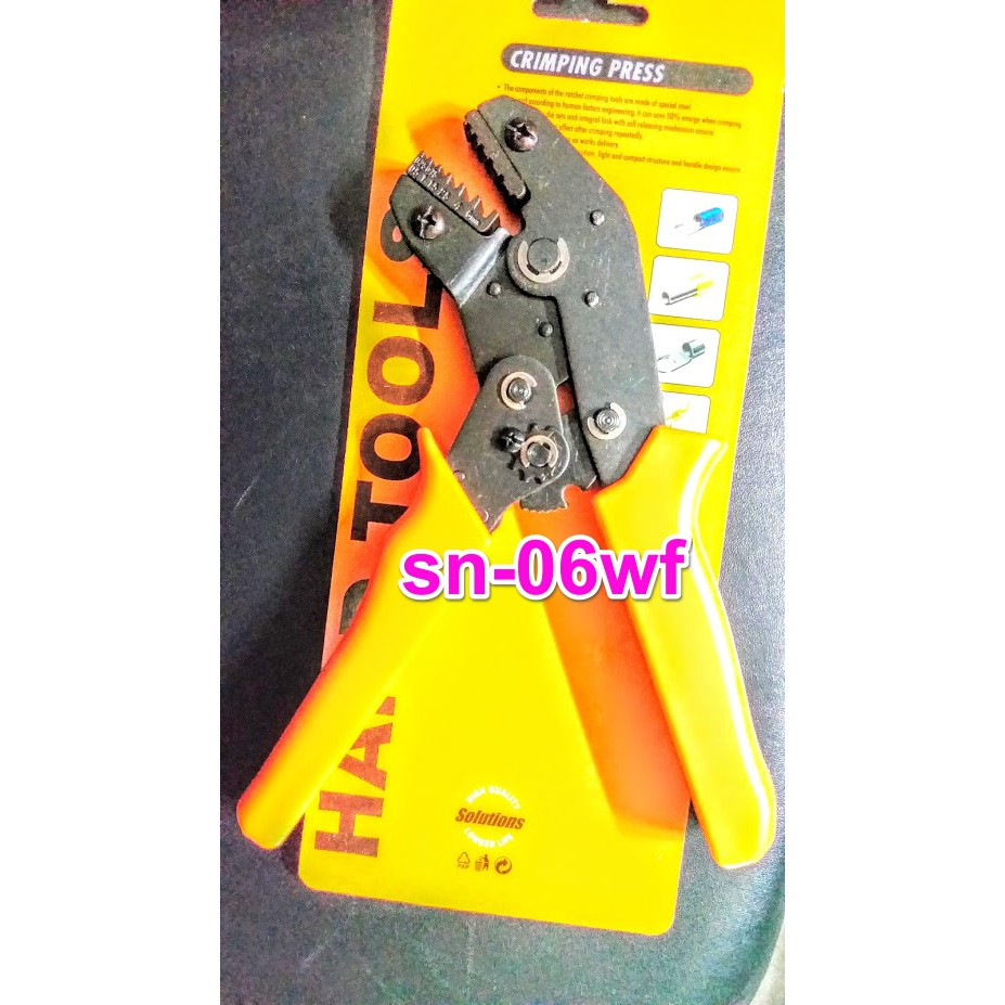 Kamy's tools chuyên nhập khẩu và phân phối các loại kìm bấm cos, kiềm bấm cos, kềm bấm cos, là dụng cụ bấm cos điện bằng tay. Có rất nhiều kìm bấm cos tương ứng với từng loại đầu cos điện muốn sử dụng để bấm ép và tùy theo lớn nhỏ mà người ta chọn sử dụng kìm bấm cos tương ứng với đầu cos điện đó. Kìm bấm cos fasen sn-06wf là một trong những kìm bấm cos được sản xuất tại trung quốc với thương hiệu fasen nổi tiếng chuyên các dụng bấm các đầu có điện với nhiều model đã rất nổi tiếng trên thị trường về chất lượng. Kìm bấm cos fasen sn-06wf hay còn được gọi là kìm bấm cos sn-06wf, kiềm bấm cos fasen sn-06wf, kềm bấm cos fasen sn-06wf, kìm bấm cos sn-06wf, kềm bấm cos sn-06wf, kiềm bấm cos sn-06wf, sn-06wf, là dụng cụ bấm các đầu cos điện có đường kính từ 0.5-6.0mm2 cũng như tương đương là 20-10AWG. Kìm bấm cos fasen sn-06wf có chiều dài 190mm và cân nặng chỉ 370g nên rất dễ dàng thao tác và có thể sử dụng thời gian lâu mà không bị mỏi tay hay đau tay gây ra. Kìm bấm cos fasen sn-06wf sử dụng cơ chế bánh răng trợ lực bên trong nên khi bấm các đầu cos điện chúng ta không cần phải bỏ ra nhiều công sức khi bấm vì cơ cấu trợ lực bánh răng đã làm nhẹ đi rất nhiều trong quá trình bấm nhưng các mối bấm ép đầu cos điện rất chắc chắn không bị lỏng lẻo sau khi bấm. Phần khuôn của kìm bấm cos fasen sn-06wf được chế tạo và gia công bằng thép cứng có thể thay thế lắp mới được sau khi sử dụng một thời gian dài chỉ cần dùng tu vít tháo ra một cách rất đơn giản.Giá USDV