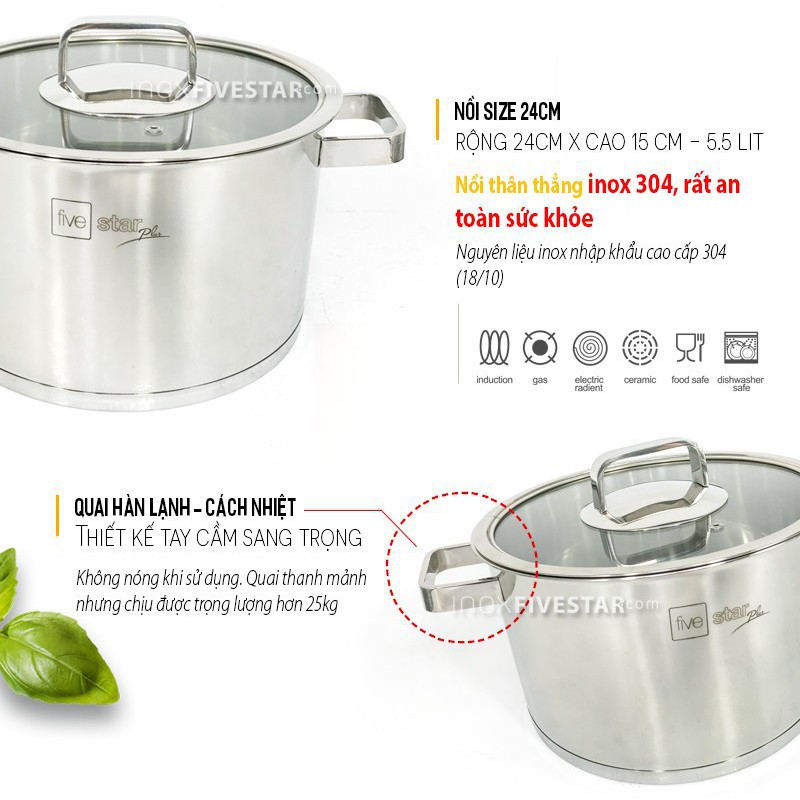 Nồi Inox 304 Fivestar 16-18-20-24CM* Thương hiệu: Fivestar
