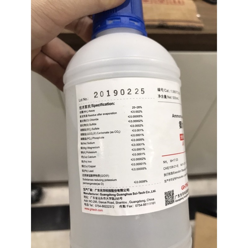 NH3 amoniac NH4OH chai 500ml Xylong CAS 1337-21-6 ammonia solutionLiên hệ: 0944.999.025 (có zalo)