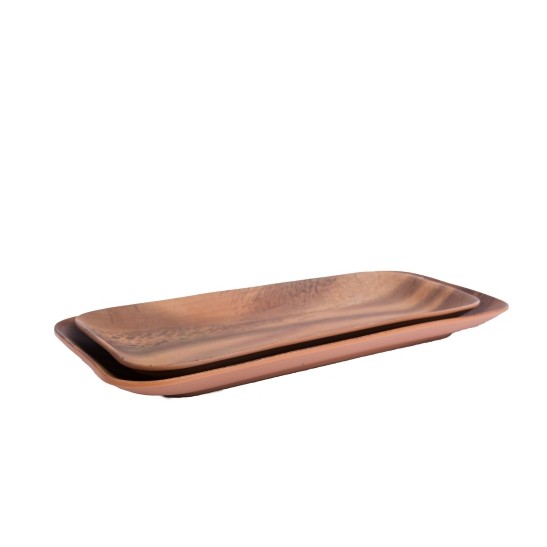 Dĩa Chữ Nhật dài size 27x11.4cm nhựa Melamine kiểu Nhám đen/Vân gỗ (DCN38N)