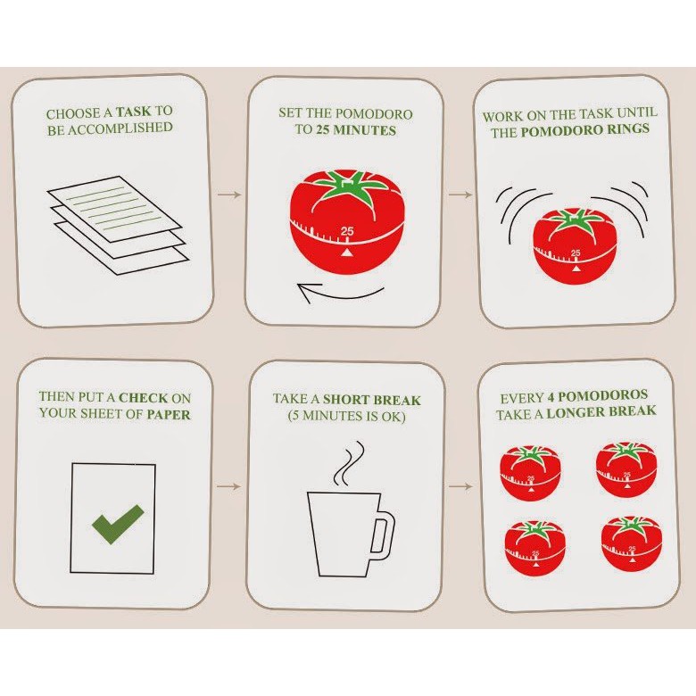 4. Nghỉ ngắn từ 3 – 5 phút giữa các Pomodoro.