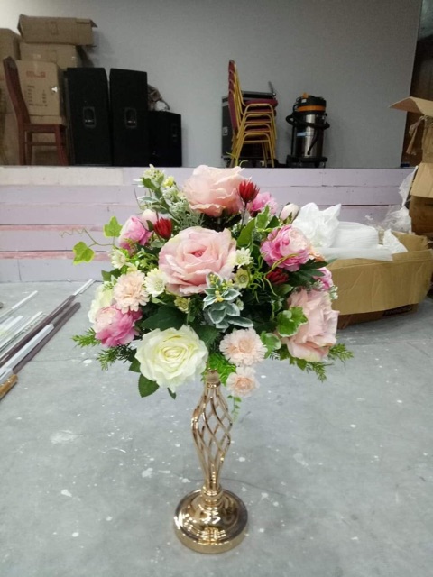 Chân nến trang trí phía trên có bát loe tròn để cắm hoa , hoặc để nến lên . Bộ ba chân nến từ cao 54cm ,48cm và 40cm . Ở giữa có trang trí hạt phale .