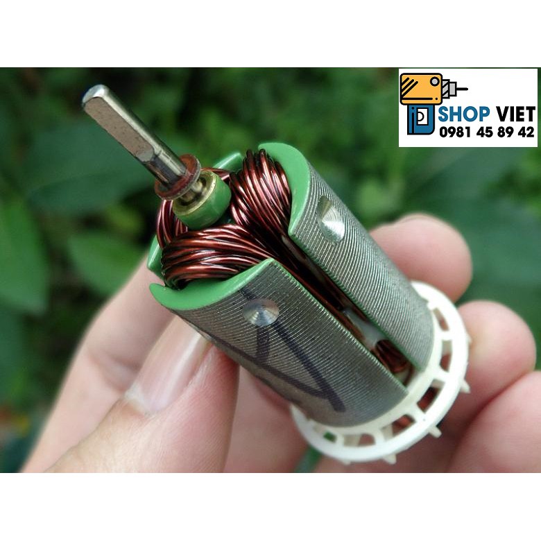 + Loại 16,8V thông thường, trục tròn sẵn bánh răng 12 răng, tốc độ 400-13500 vòng/ phút, phù hợp dùng với máy pin Liion