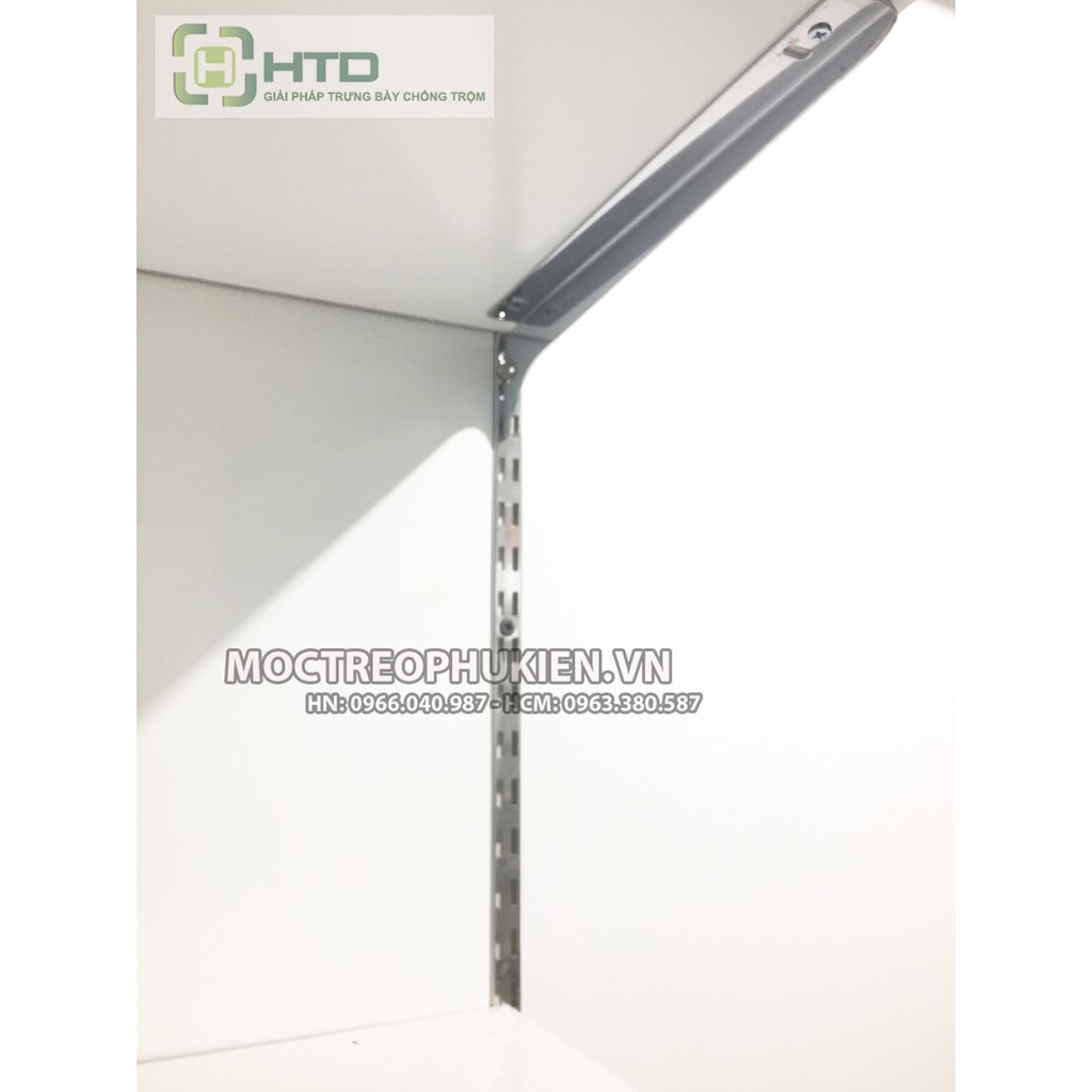 Thanh ray gắn tường đôi A2 được sử dụng cùng với cốc đỡ, tay đỡ, ke đỡ, hoặc sử dụng trực tiếp với móc treo cài thanh ray để làm kệ trưng bày hàng hóa, kệ lưu trữ tại các cửa hàng phụ kiện điện thoại, phụ kiện thời trang, siêu thị, nhà kho...