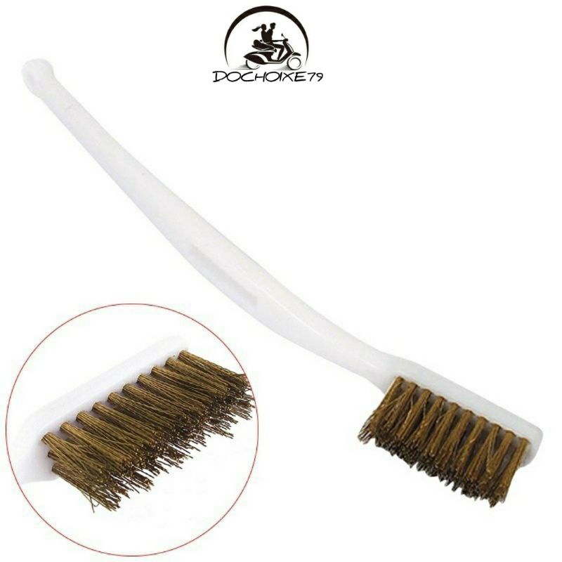 Bàn chải sợi đồng cán nhựa dài 18Cm.Sợi đồng thau chuyên dùng để chà rửa lốc máy ( không bị trầy lốc máy ),đầu bò xe máy.vệ sinh bếp ga,vệ sinh rỉ sét,chà rửa các chi tiết máy...