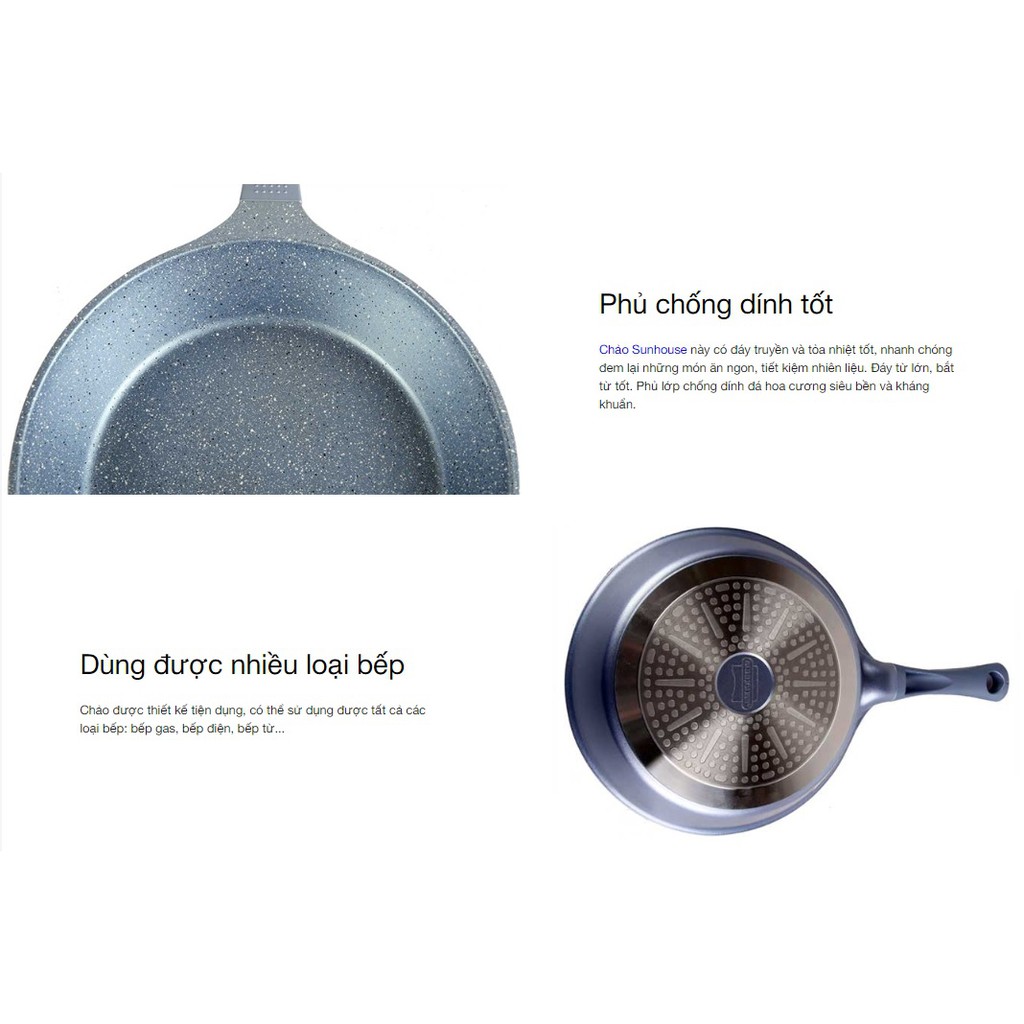 Chảo đá Sunhouse là dòng chảo đá hoa cương cao cấp của Sunhouse, đáp ứng được nhiều nhu cầu sử dụng chiên, xào....hàng ngày của nhiều Chị Em nội trợ.