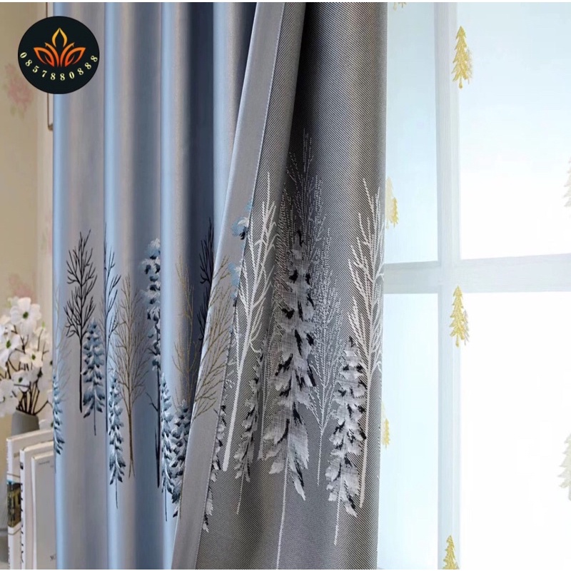 [Rèm Cực Dày] Rèm vải họa tiết cây thông,rèm cửa che nắng 3D bán từ 1.5met