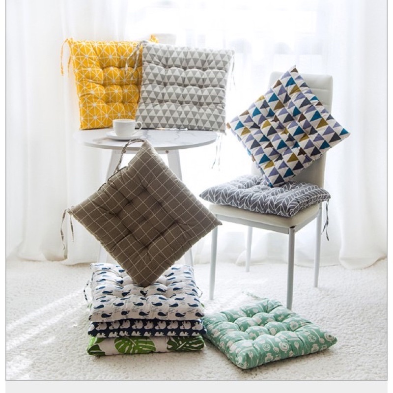 Kiểu dáng: thiết kế hình vuông có dây cột ghế năng độngChất liệu: lớp bọc nệm được may bằng vải polyester, chống thấm nước, ngăn bụi, không đổ lông.
