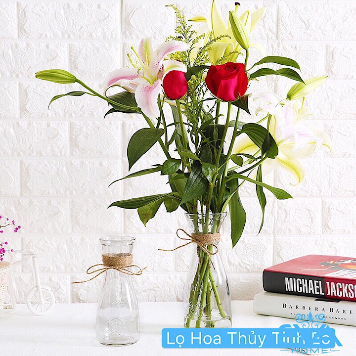 Giới thiệu Combo 2 Bình Bông Lọ Hoa Thủy Tinh Eo Lớn - Eo nhỏ Tặng Kèm Dây Bố Trang Trí
