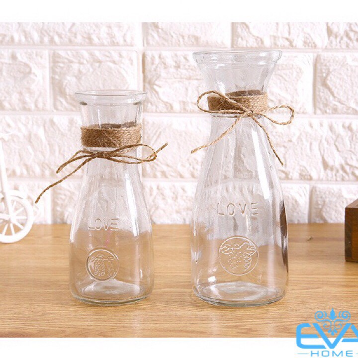 - Bộ sản phẩm gồm : 2 lọ hoa thuỷ tinh eo lớn 500 ml và lọ hoa thuỷ tinh eo nhỏ 350 ml , 2 Mét dây bố trang trí