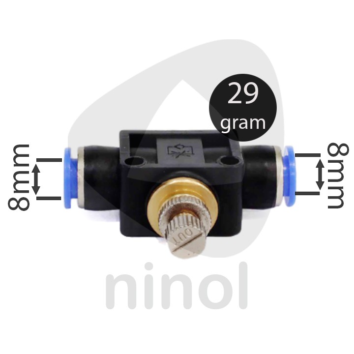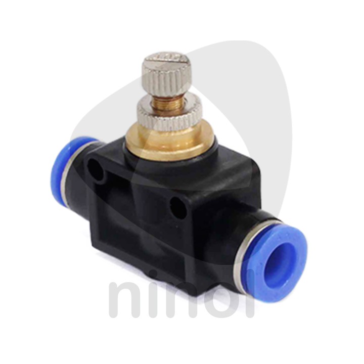 - Van tiết lưu chỉnh khí nén ESA là loại khớp nối nhanh dây hơi, có 2 đầu nối nhanh vào dây hơi và 1 núm điều chỉnh áp lực của hơi.