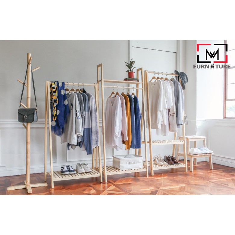 Nhà cửa & Đời sống > Dụng cụ chăm sóc nhà cửa > Dây phơi & giá phơi quần áo || Giá treo đồ hình thang hàn quốc màu gỗ tự nhiên - MW FURNITURE - Nội thất căn hộCòn hàng