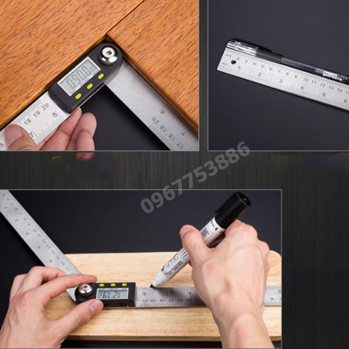 Thước đo góc điện tử 200mm có thể vừa đo chiều dài (0-200 mét/0-8 inch) và góc (0-360 °) một cách nhanh chóng và chính xác.Ứng Dụng rộng: chế biến gỗ, điều chỉnh góc độ của cưa, xe bảo trì và sửa chữa, xây dựng, vẽ, vv.