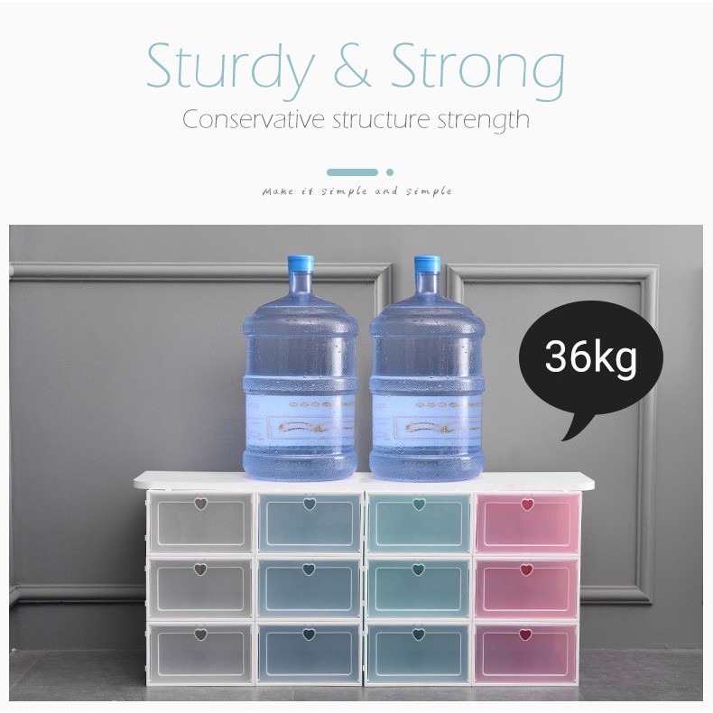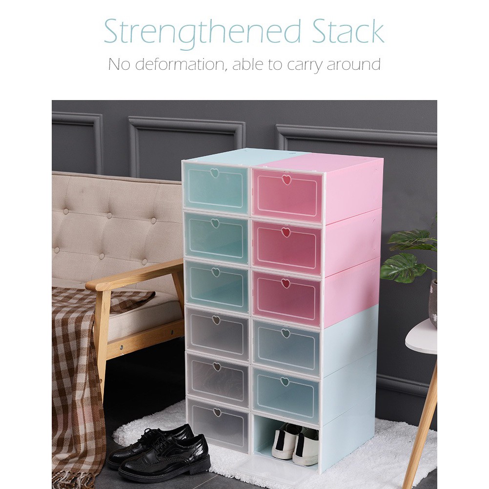 - Bạn có thể xếp chồng nhiều hộp thành 1 kệ đựng giầy cứng cáp. Có thể di chuyển dễ dàng