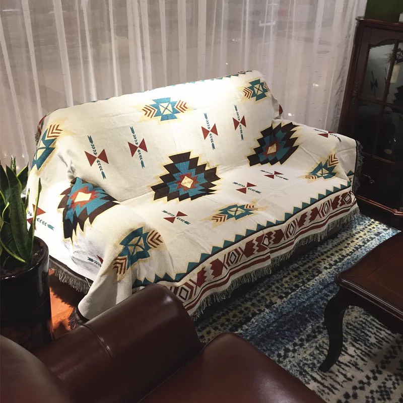 Khăn phủ Sofa, Thảm thổ cẩm vintage trang trí phòng khách kích thước 1m8x2m3
