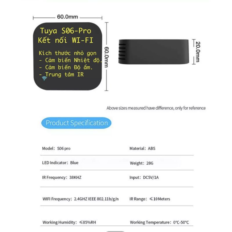 rung tâm điều khiển hông ngoại tuya smart giúp việc điều khiển các thiết bị điện trong nha dễ dàng hơn, điều khiển điều hòa, quạt tivi hoặc bất cứ thứ gì dùng remote hồng ngoại**Thông số kỹ thuật: