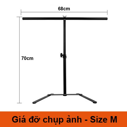 Giá đỡ chụp ảnh size M: 68 x 70 cm - size L: 185 x 150 cm (188 cm là chiều cao tối đa)