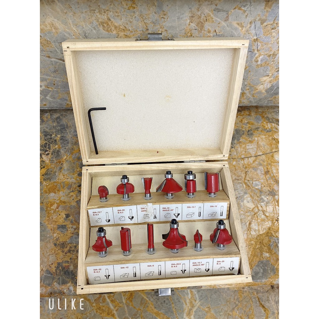 + Bộ mũi phay gỗ 12 món chuyên dùng cho máy phay cầm tay hoặc máy bàn router
