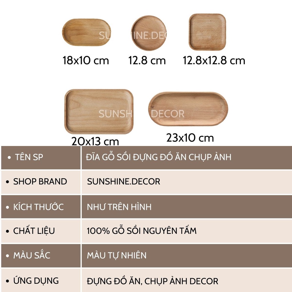 Giới thiệu Đĩa gỗ khay gỗ sồi đựng đồ ăn chụp ảnh decor trang trí bàn ăn
