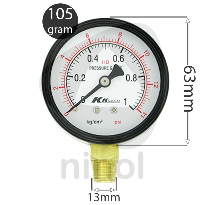 Đồng hồ đo áp suất nước và khí hiệu Kk Gauges được nhập khẩu chính thức từ Đài Loan, đồng hồ đo áp suất 10kg hiệu Kk Gauges là dòng sản phẩm chất lượng tốt được sản xuất theo công nghệ và tiêu chuẩn Nhật Bản. Đồng hồ đo áp suất hiệu Kk Gauges loại chân đứng được ứng dụng chủ yếu để đo áp suất môi chất lỏng và đo áp suất khí trong thiết bị hoặc đường ống dẫn, chịu được nhiệt độ cao và chống sự ăn mòn của môi chất rất tốt.
