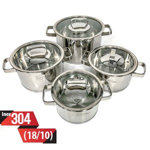 Giới thiệu Bộ nồi inox đáy từ cao cấp FiveStar Plush FS08CG-304 nắp kính 4 chiếc,inox 304