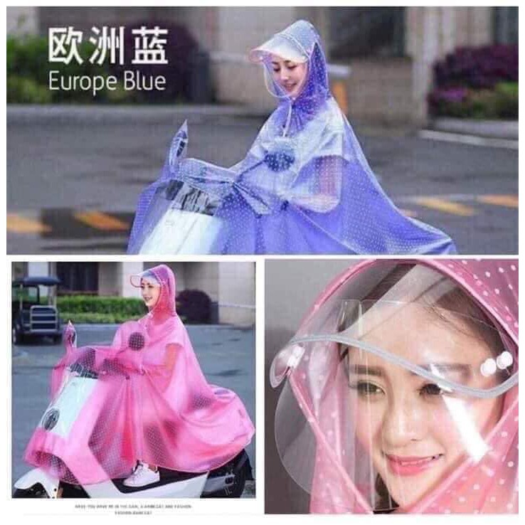 👉Áo mưa châm bi kèm luôn khẩu trang nên đi trời mưa to vẫn ko bị ướt mặt nhé, đặc biệt mấy bạn bị cận thì ko lo nhòe kính đâu
