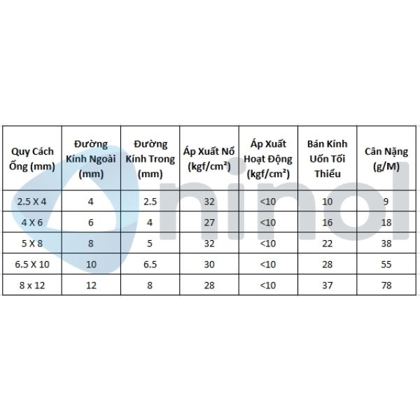 THÔNG TIN KỸ THUẬT SẢN PHẨM Ở HÌNH ẢNH CUỐI CÙNGTên sản phẩm: Dây hơi khí nén PU bán theo mét