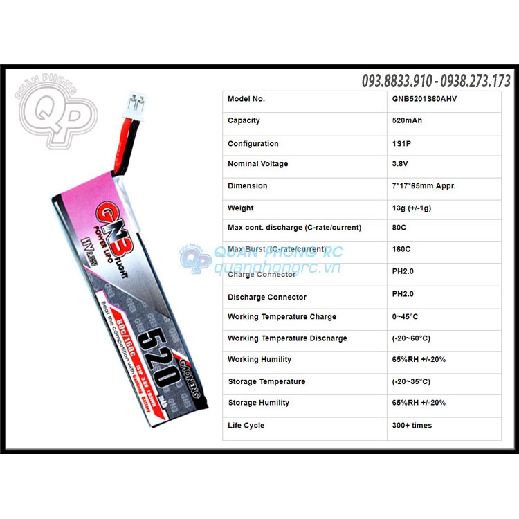 Hãng sản xuất: GNBDung lượng: 520mAh