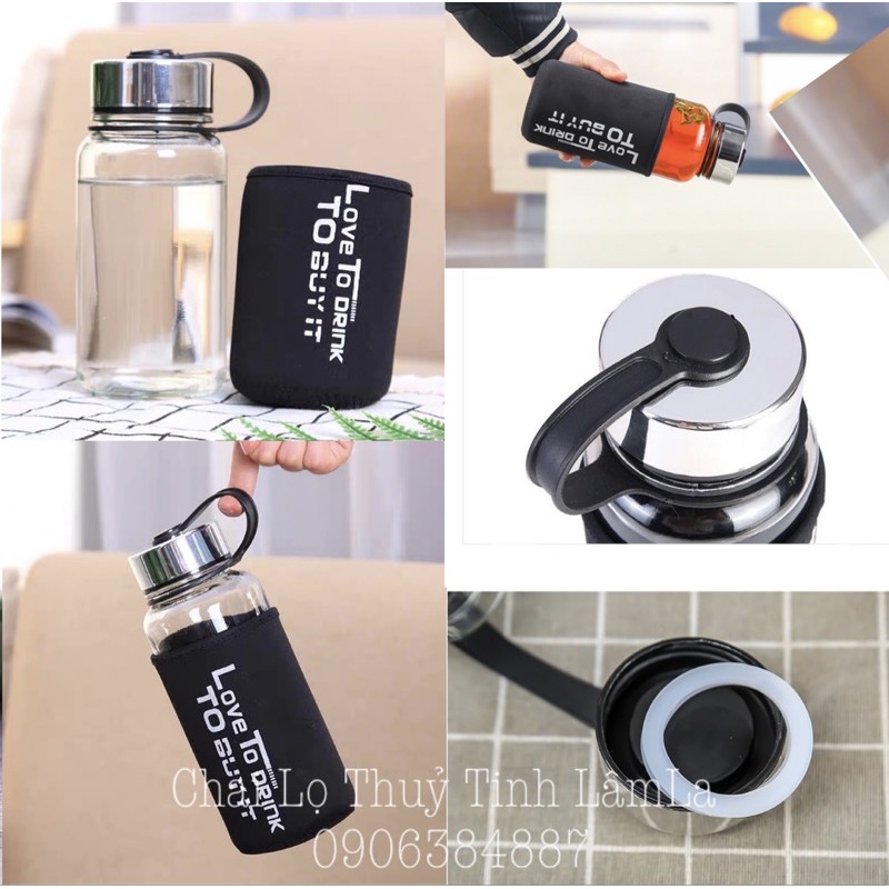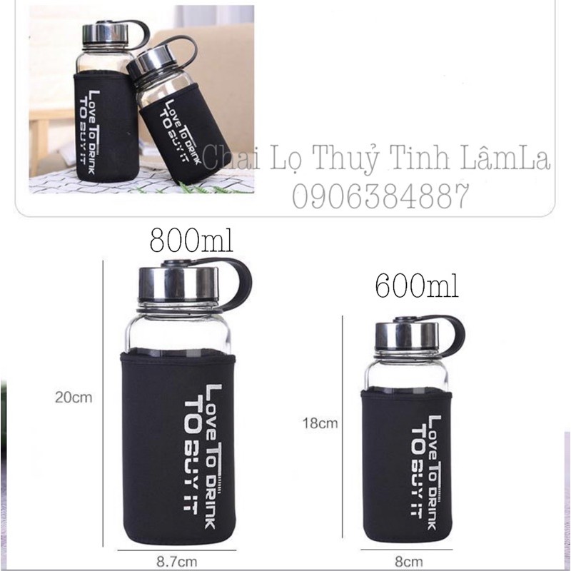 Giới thiệu Bình Thuỷ Tinh Đựng Nước Nắp Nhựa Bạc Love To Drink 600ml - 800ml