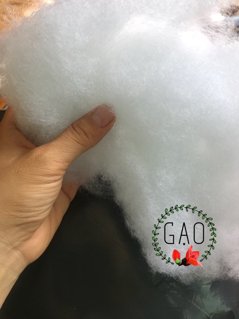 Bông gòn tơi có thành phần là polyester, được làm tơi ra thành những sợi bông nhỏ.