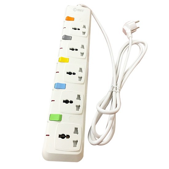 Thiết Bị Điện Gia Dụng > Mạch điện & Phụ tùng > Ổ cắm điện & Dây nối || Ổ cắm nối dài an toàn chính hãng Comet CESG2503 (5 ổ 3 chấu đa năng, dây 3m)Còn hàng