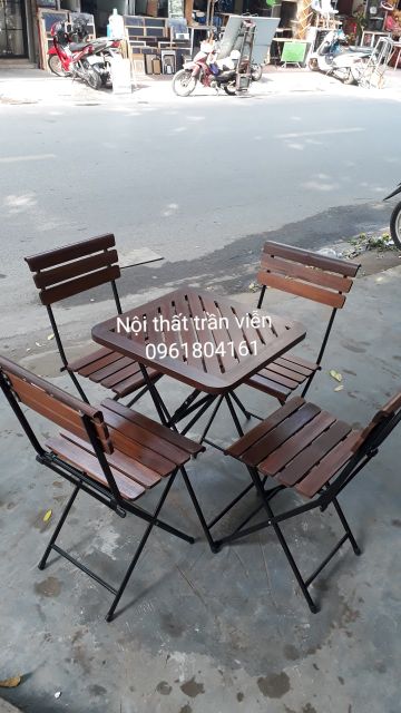 Bộ bàn Ghế gấp cà phê lan gỗ fansipan (1 bàn - 4 ghế)Ghế thiết kế kiểu dáng gấp gọn dễ sử dụng không chiếm diện tích