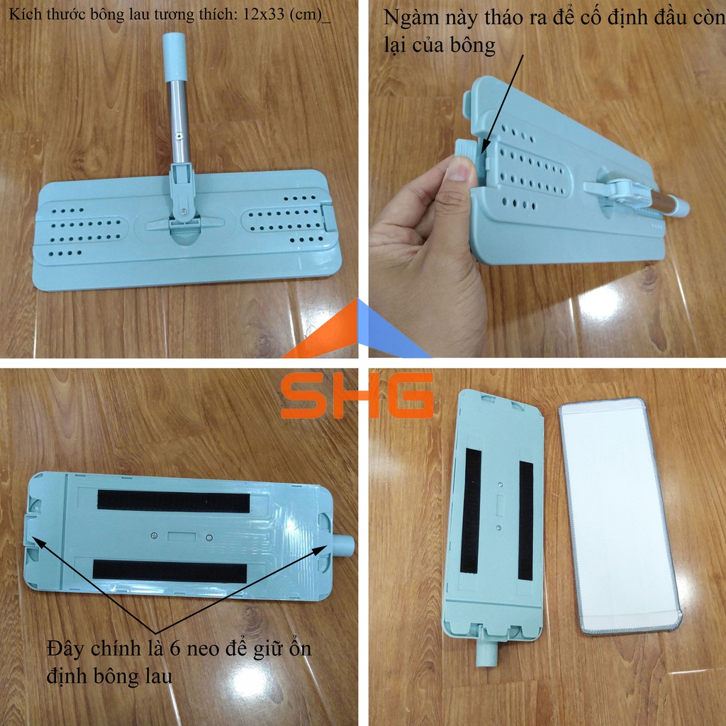 ✓ Bông lau nhà dệt từ sợi bông tự nhiên mềm mại giúp lau sạch nhà hơn, trên bông lau có 6 cái lỗ mắc vào 6 cái ngàm trên mâm lau nhựa, các bạn nhớ mắc vào cho đúng nhé, không là sẽ bị tuột bông đó ạ