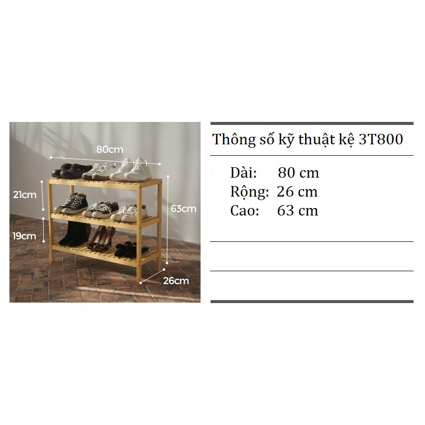 Giới thiệu KỆ GỖ ĐỂ GIÀY DÉP 3 TẦNG 80 cm - Dài 80 x Cao 63cm
