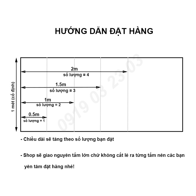 Chiều dài tăng theo só lượng bạn đặt