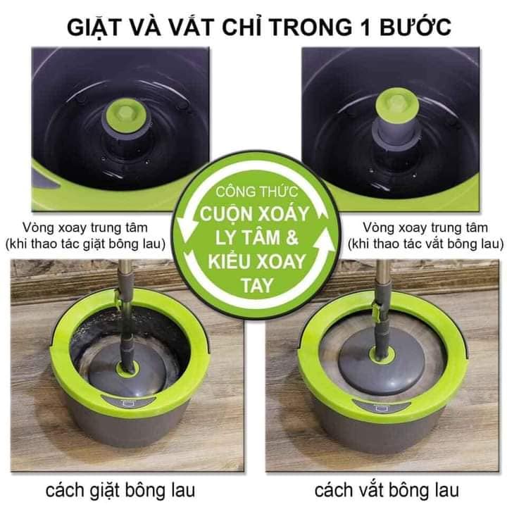 - Thiết kế trục xoay lồng giặt giữ cho đĩa lau ổn định, chắc chắn khi quay, giúp giặt sạch bông lau và vắt khô hơn mà không tốn nhiều công sức.