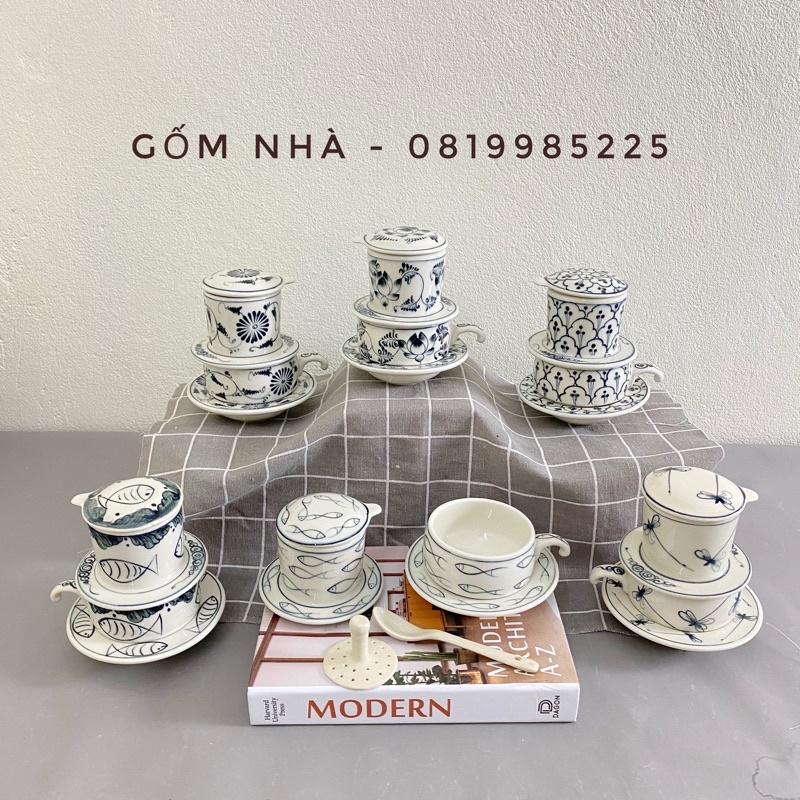 Giới thiệu Bộ Phin Pha Cafe/ Cà phê/ Coffee hoạ tiết men bóng Bát Tràng