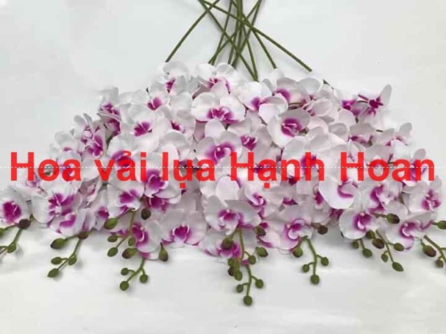 Cành hoa lan hồ điệp chất liệu vải nhập khẩu cánh mềm mượt y thật luôn khách nhé- Chiều cao ~91cm nặng tay, thân xanh y thật