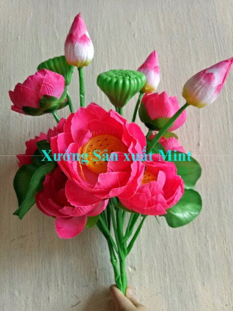 Hoa sen búp việt cành cao 1m gồm 3 lá 3 hoa 1 nụ 1 nậm- Chiều cao :1m ( khách lưu ý hàng l1 và hàng l2 nhé, hàng loại 2 chiều dài chỉ có 80cm , nhuỵ trơn, hàng nhà mình dài 1m và nhuỵ có râu y thật