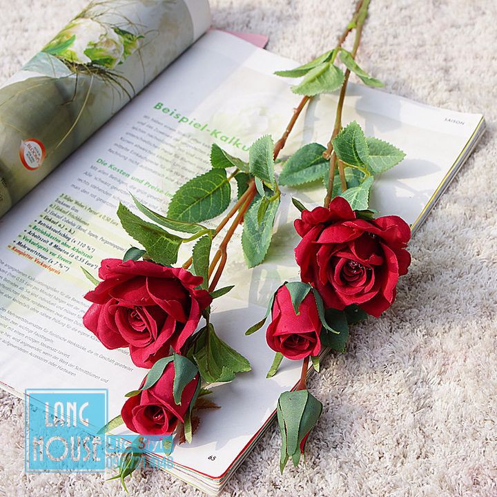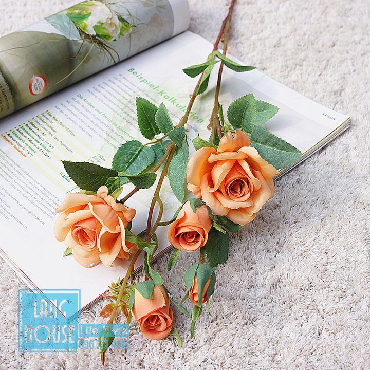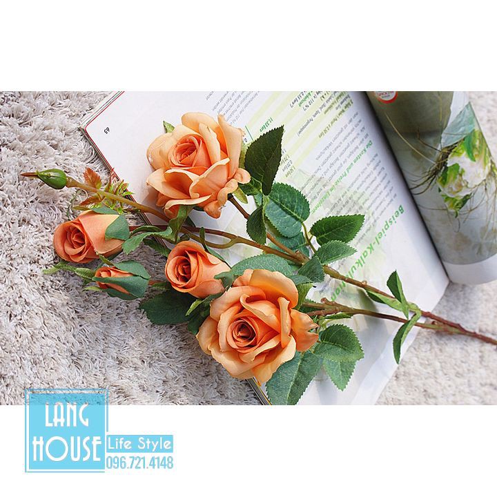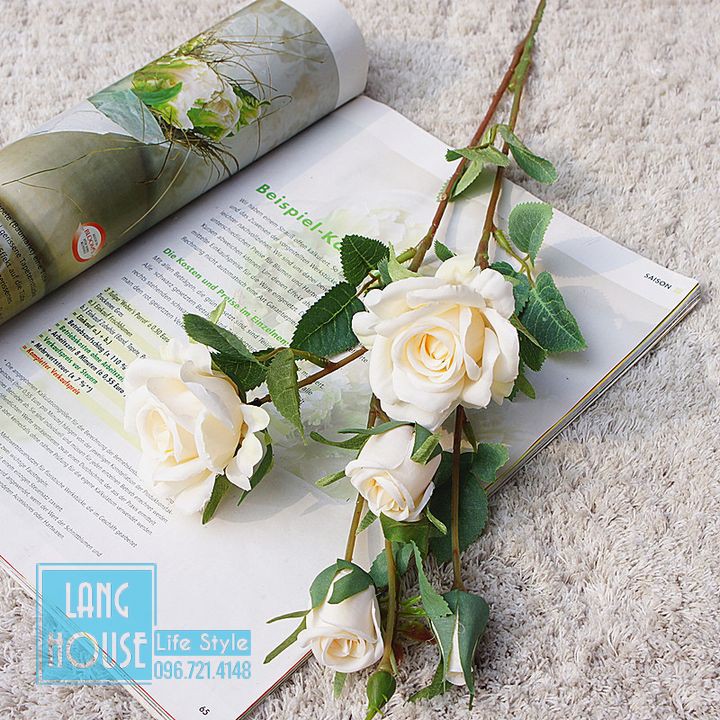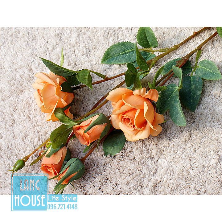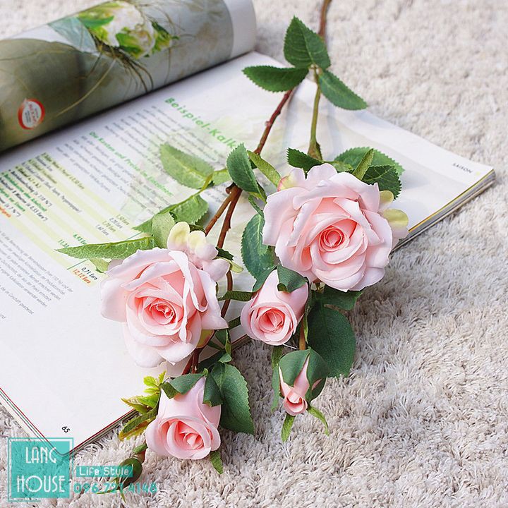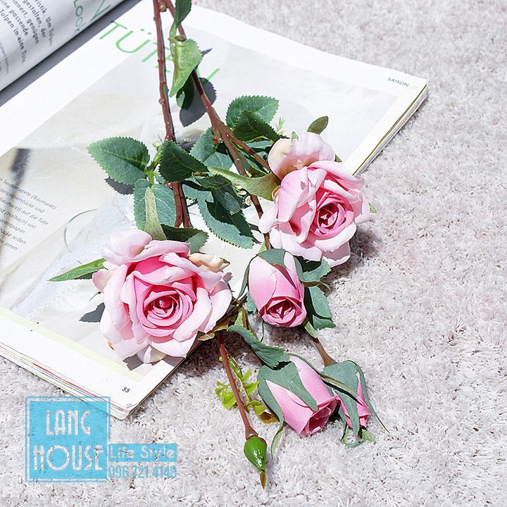 Giới thiệu Hoa Giả Hoa Lụa - HOA HỒNG PHÁP Loại 1 Giống Thật - 1 Cành 4 Bông
