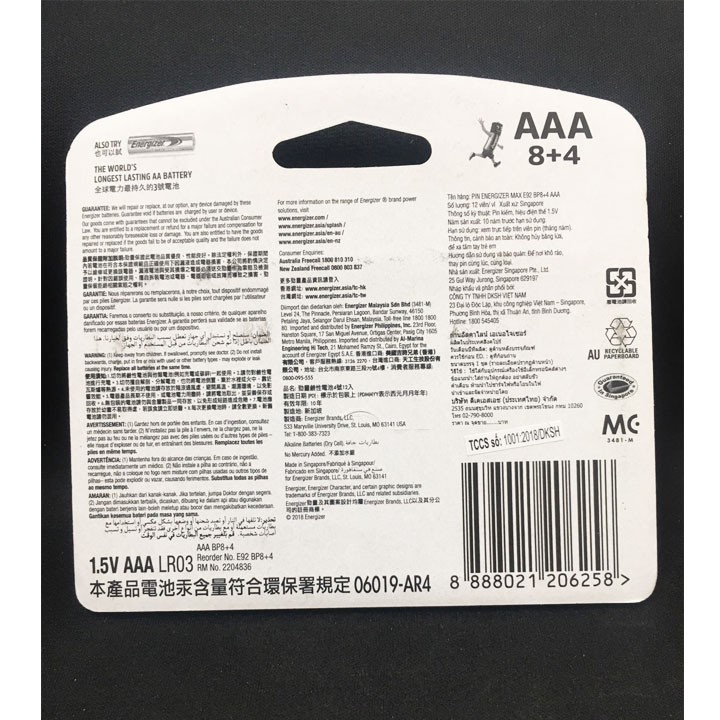 Thiết Bị Điện Gia Dụng > Pin || PIN AAA ENERGIZER ALKALINE 1.5V (vỉ 12 viên) MẪU MỚI 2019.Còn hàng