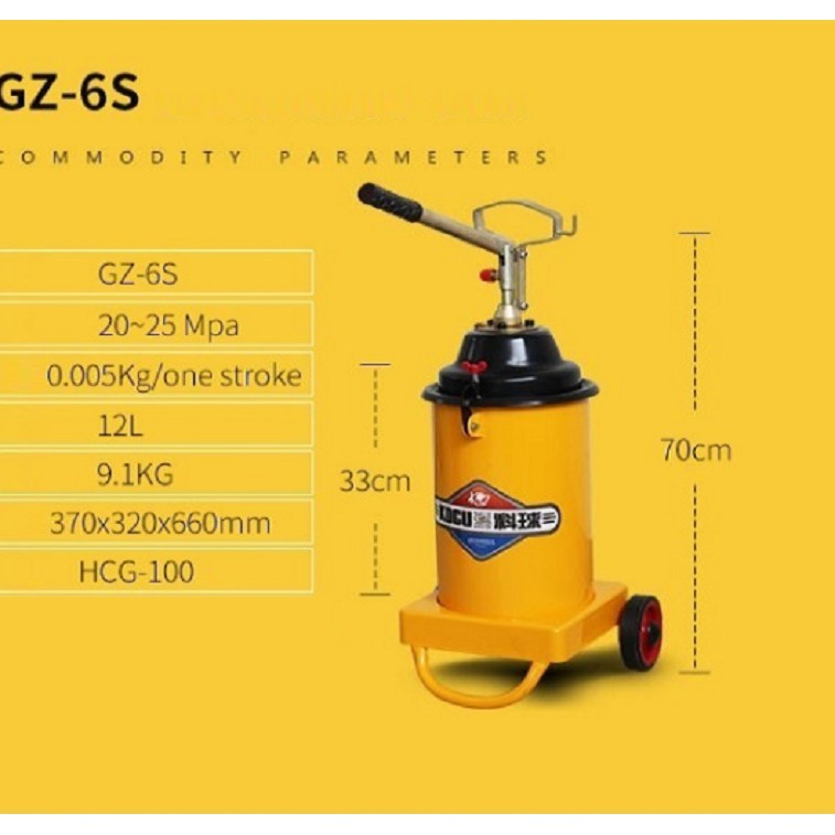 Máy bơm mỡ Kocu GZ-6S với dung tích thùng chứa lớn từ 12 lít mỡ giúp người sử dùng dễ dàng tra mỡ vào các chi tiết nhỏ của má móc mà không sợ bị dính bẩn. - GZ-6S được rất nhiều garage ô tô sử dụng bởi khả năng bơm mỡ nhanh, hiệu quả với lượng mỡ ra là 0,5 g/lần. Máy bơm mỡ bằng tay rất nhẹ nhàng, lượng mỡ ra đều mà không tốn nhiều sức. - Phần dây dẫn mỡ dài 2.5m lắp đặt rất đơn giản. Đầu ra mỡ nhỏ giúp tra mỡ vào động cơ chính xác, dễ kiểm soát lượng mỡ bơm mà không phải lo về việc mỡ bị rớt ra ngoài, gây bẩn và phải mất công vệ sinh.Thông số sản phẩm: Máy bơm mỡ bằng tay Kocu GZ-6S (12 lít)Kích thước đóng gói: 360mm x 280mm x 630mmLoại máy bơm: Máy bơm mỡ bằng tayDung tích thùng chứa: 12 lítLượng mỡ ra: 0,5 g/lầnÁp suất bơm mỡ: 200 – 250 barChiều dài dây: 2,5mTrọng lượng sản phẩm: 10kgThương hiệu: Trung QuốcBảo hành 6 tháng trên toàn quốc
