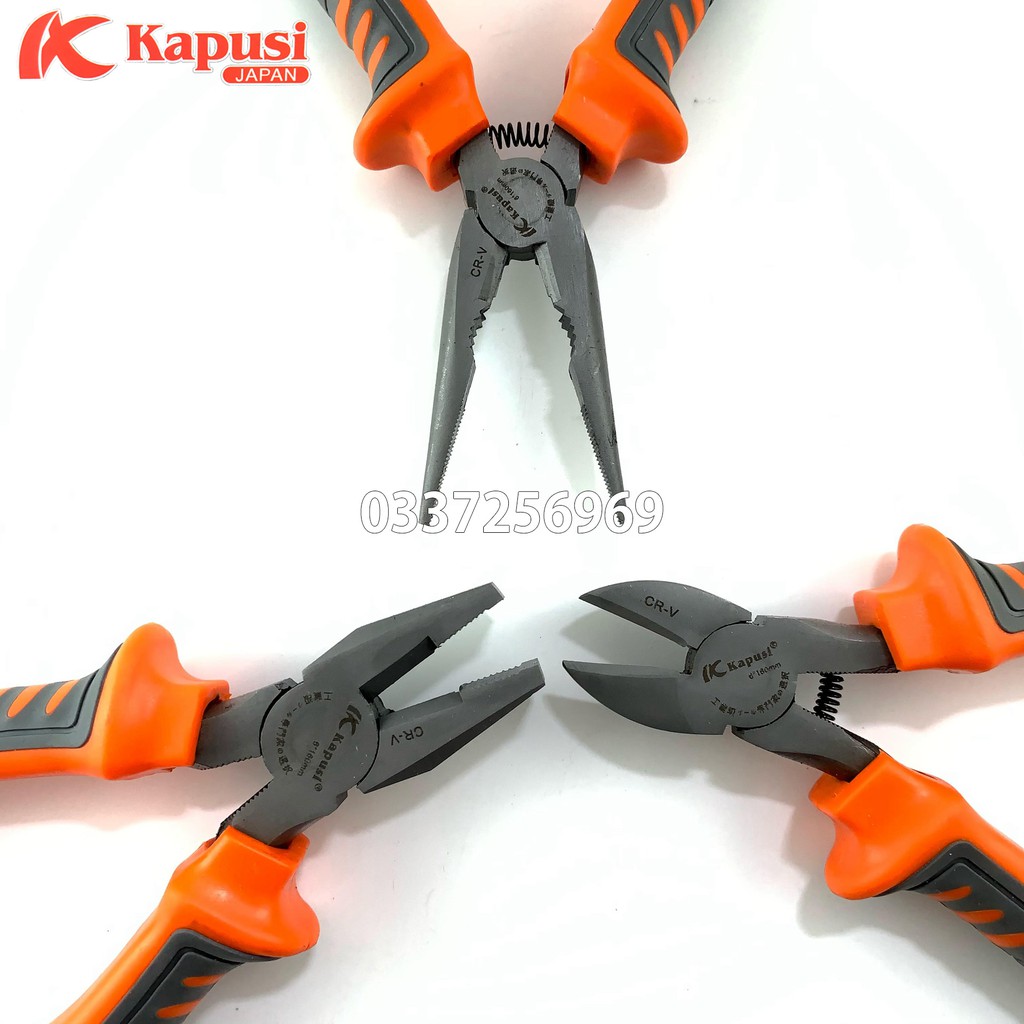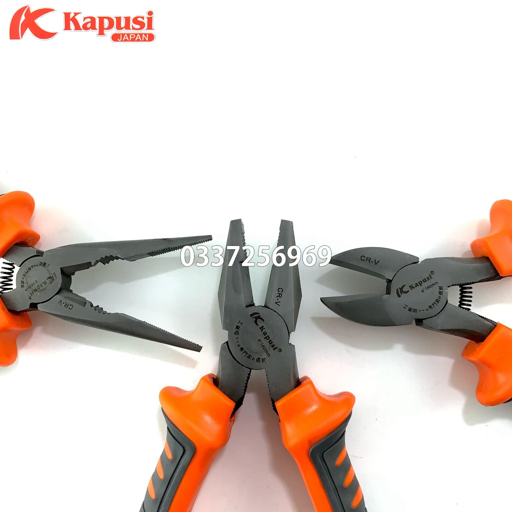 Bộ 3 kìm Điện - Cắt - Nhọn cao cấp thép CR-V Kapusi JAPAN 6 inch (150mm)