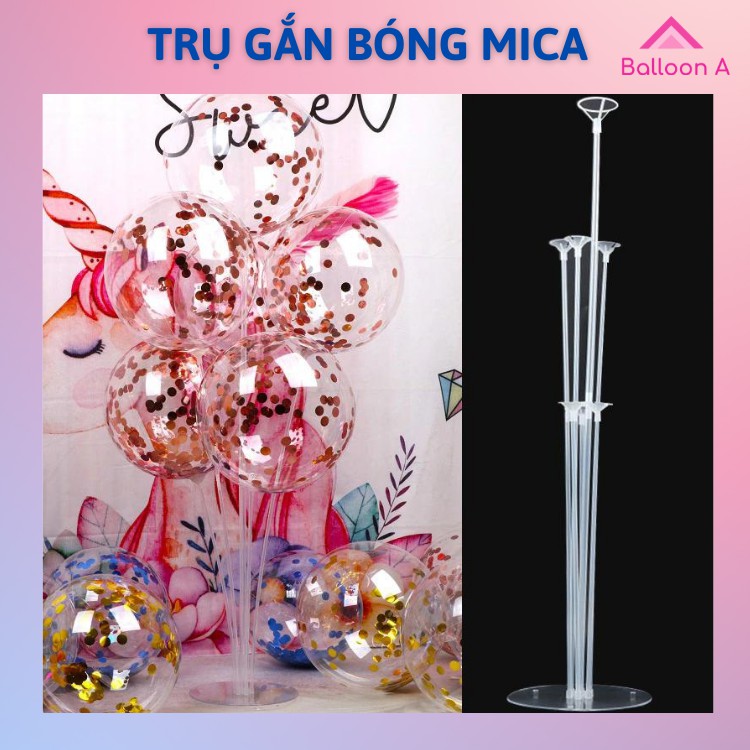 💕 trụ mica này được làm bằng nhựa cao cấp trong suốt , đế rất dầy , các que gài bóng có mầu trong suốt . Sản phẩm gồm 1 đế trụ hình tròn đường kính khoảng 17cm và có 7 que gài bóng . Que cao nhất cao gần 80cm . Các que được nối với nhau bằng khớp nối 👍