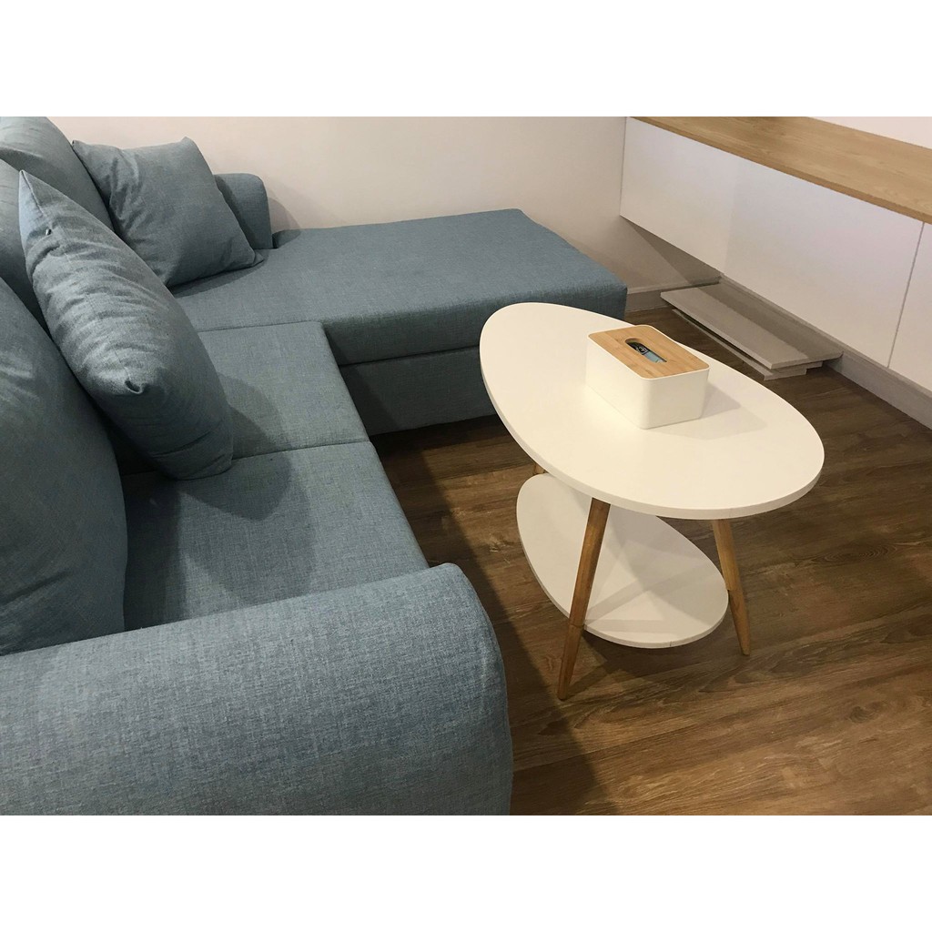 Bàn trà sofa hình trứng 2 tầng chân cao 49cm, có 2 màu lựa chọn cho ghế sofa - GP56